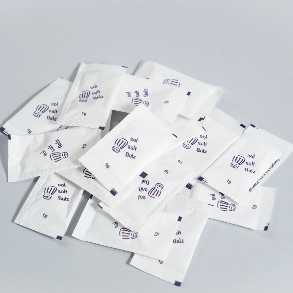 U ponudi dostupna je sol u pakiranju od 2 g, a jedno pakiranje sadrži 1.000 komada. Za objekte koji žele dodatnu prilagodbu, dostupna je i mogućnost tiska logotipa, pri čemu je minimalna količina za tisak 5.000 komada. Tisak je moguć do 3 boje, a izrada klišea naplaćuje se 12 € po boji jednokratno.